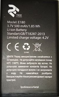 Аккумулятор 2E (S180) 500/800mAh Li-ion, оригинал. Соответствие: Twoe 2E E180/ S180/ S180 2021/ T180/ E180 2019. Размеры: (53 х 34 х 5мм.) крайний контакт (+)3мм. Гарантия 6 месяцев, доставка по Киеву и Украине. Есть доставка по СНГ.
