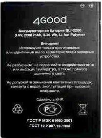 4Good (BLI-2200) 2200mAh Li-ion, оригинал. Соответствие: 4Good Light A104 4G. Гарантия 6 месяцев, доставка по Киеву и Украине. Есть доставка в Россию и другие страны СНГ.