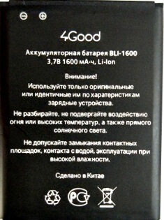 Аккумулятор 4Good (BLI-1600) 1600mAh Li-ion, оригинал. Соответствие: 4Good S450m 4G. Размеры: (70 x 52,5 x 5,5мм.) крайний контакт (-)7,5мм. Гарантия 6 месяцев, доставка по Киеву и Украине. Есть доставка по СНГ.