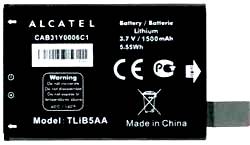 Alcatel OT 995 (CAB31Y0006C1) TLIB5AA 1500mAh Li-ion 5.55Wh, оригинал. Соответствие: OT-995, OT-995 Ultra, 993. Размеры: 64.5 x 44 x 5мм.