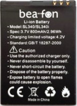 Аккумулятор Bea-Fon SL340 (S340) 800/1100mAh Li-ion, оригинал. Соответствие: Bea-Fon SL320, SL340, SL340i, SL360, T850. Размеры: (60 х 44 х 5мм.) прорези, средний контакт (-) крайний (+)4мм. Гарантия 6 месяцев, доставка по Киеву и Украине. Есть доставка по СНГ.