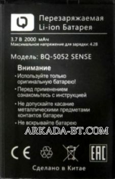 Аккумулятор BQ (BQ-5052) 2000mAh Li-ion, оригинал. Соответствие: BQ BQ-5052 Sense. Размеры: (80 х 52,5 х 4мм) крайний контакт (+)6,5мм. Гарантия 6 месяцев, доставка по Киеву и Украине. Есть доставка по СНГ.