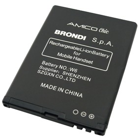 Аккумулятор Brondi Amico Chic (W6) 800/1050mAh Li-ion, оригинал. Соответствие: Brondi Amico Chic W5/ W6, Amico Ci Cento ZTBL-4D-01, Amico Sicuro. Размеры: (60 х 44 х 4мм.) прорези, средний контакт (-) крайний (+)4мм. Гарантия 6 месяцев, доставка по Киеву и Украине. Есть доставка по СНГ.