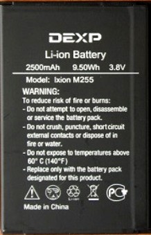 Dexp (Ixion M255) 2500mAh Li-ion, оригинал. Соответствие: Dexp Ixion M255 Pulse. Размеры: 87 х 58,5 х 5мм. крайний (-)8,5мм. Гарантия 6 месяцев, доставка по Киеву и Украине. Есть доставка в Россию и другие страны СНГ.