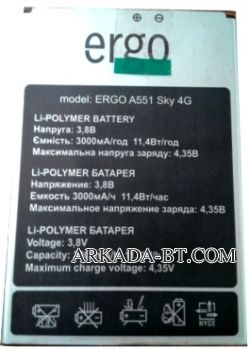 Аккумулятор Ergo (Sky A551) 3000mAh Li-Polymer, оригинал. Соответствие: Ergo Sky A551 4G, HomTom HT17. Размеры: (87 х 59,5 х 4мм.) крайний контакт (-)20мм. Гарантия 6 месяцев, доставка по Киеву и Украине. Есть доставка по СНГ.