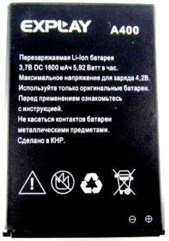 Аккумулятор Explay (A400) 1600mAh Li-ion, 5.92Wh оригинал. Соответствие: Explay A400 black, white. Размеры: (74,5 х 50 х 4мм.) крайний контакт (+)4мм. Гарантия 6 месяцев, доставка по Киеву и Украине. Есть доставка по СНГ.