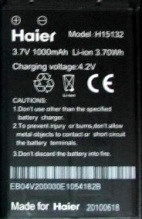 Аккумулятор Haier (H15132) 1000mAh Li-ion, оригинал. Соответствие: Haier HM-M360, HM-D330, HM-M002, HM-M520, HM-U56T, HM-U55T, HC-FC500. Размеры: (53 х 34 х 5мм.) крайний (+)3мм. Гарантия 6 месяцев, доставка по Киеву и Украине. Есть доставка по СНГ.