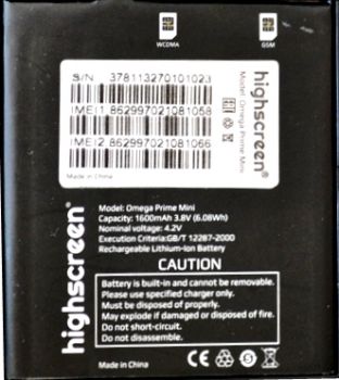 Пожалуйста, сформулируйте Ваши вопросы относительно Highscreen (Omega Prime Mini) 1600mAh Li-ion, оригинал: