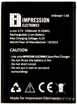 Аккумулятор Impression (1.40) 1500mAh Li-ion, 5.55Wh оригинал. Соответствие: Impression ImSmart 1.40, A401 Black. Размеры: (63 х 46 х 4,5мм.) крайний контакт (+)3мм. Гарантия 6 месяцев, доставка по Киеву и Украине. Есть доставка по СНГ.