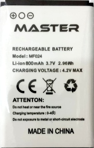 Аккумулятор Master (MF024) 800mAh Li-ion, оригинал. Соответствие: Радиоприёмник Master MF01, MF015, MF016, MF021, MF024. Размеры: (53 х 34 х 5мм.) крайний контакт (+)3мм. Гарантия 6 месяцев, доставка по Киеву и Украине. Есть доставка по СНГ.
