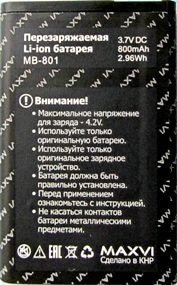 Аккумулятор Maxvi C10 (MB-801/MB-802) 600/800mAh Li-ion, оригинал. Соответствие: Maxvi B1, B7, C3, C4, C5, C6, C7, C10, C11, C40, K12, K16, E3, MB-801, MB-802, MB-804. Размеры: (53 х 34 х 5мм.) крайний контакт (+)3мм. Гарантия 6 месяцев, доставка по Киеву и Украине. Есть доставка по СНГ.