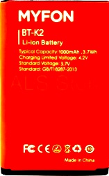 Аккумулятор Myfon K2 (BT-K2) 800/1000mAh Li-ion, оригинал. Соответствие: Myfon Senior K2, K18, K19, K28. Размеры: (53 х 34 х 5мм.) крайний контакт (+)3мм. Гарантия 6 месяцев, доставка по Киеву и Украине. Есть доставка по СНГ.