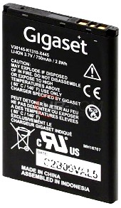 Аккумулятор Siemens Gigaset (V30145-K1310-X444) 830mAh Li-ion 3.1Wh оригинал, 3.7V. Соответствие: V30145-K1310-X445, V30145-K1310-X447, S30852-D2058-X1. радиотелефон Siemens-Benq Gigaset SL400A, SL788, SL910, SL910A, SL910H, SL78H, SL780, SL785, X656, SX780. Размеры: (53 х 35 х 4,5мм.) крайний контакт (-)4мм.