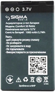 Аккумулятор Sigma (Comfort 50 Retro) 1000mAh Li-ion, оригинал. Соответствие: Sigma Comfort 50 Retro, Comfort 50 Agat. Гарантия 6 месяцев, доставка по Киеву и Украине. Возможна доставка по СНГ.