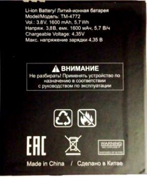 Пожалуйста, сформулируйте Ваши вопросы относительно Texet (TM-4772) 1600mAh Li-ion, оригинал: